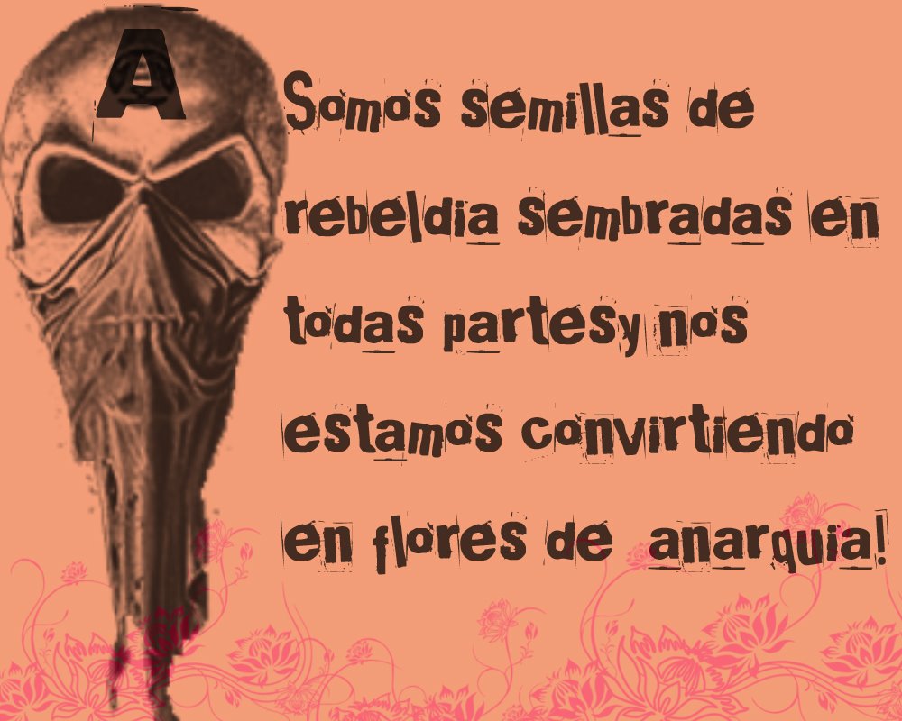 Hola a todxs les doy la bienvenida a este humilde blog que estará dedicado a la contrainformacion, textos libertarios, pensamientos rebeldes, opiniones,noticias, música under libertaria y otras acciones que apoyen al movimiento de dilución libre y directa de ideas.